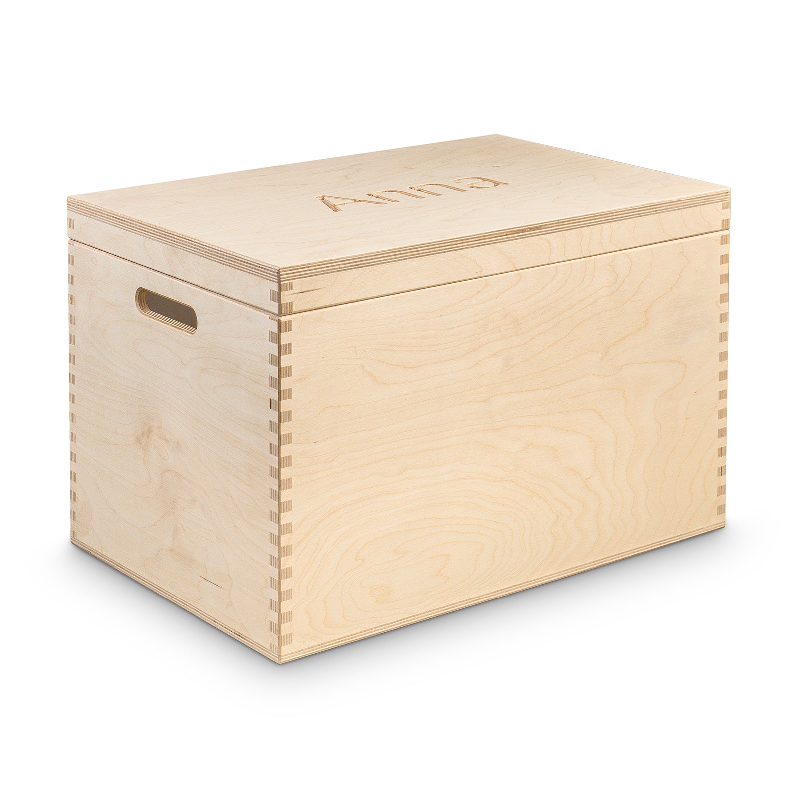 Eine Kiste sollte ein Geschenk sein, das ein Kind ein Leben lang begleitet. Sie sollte möglichst die ganze Kindheit fassen können und besonders langlebig sein. Kisten von Billiganbietern werden in Asien gefertigt und nur graviert. Sie sind sehr klein und aus minderwertigen Materialien gefertigt. Sie eignen sich daher eher als Wegwerfprodukte. Weil Sie so klein sind, können darin keine größeren Spielsachen wie Holzbahn, Spielklötze oder Spiele aufbewahrt werden.